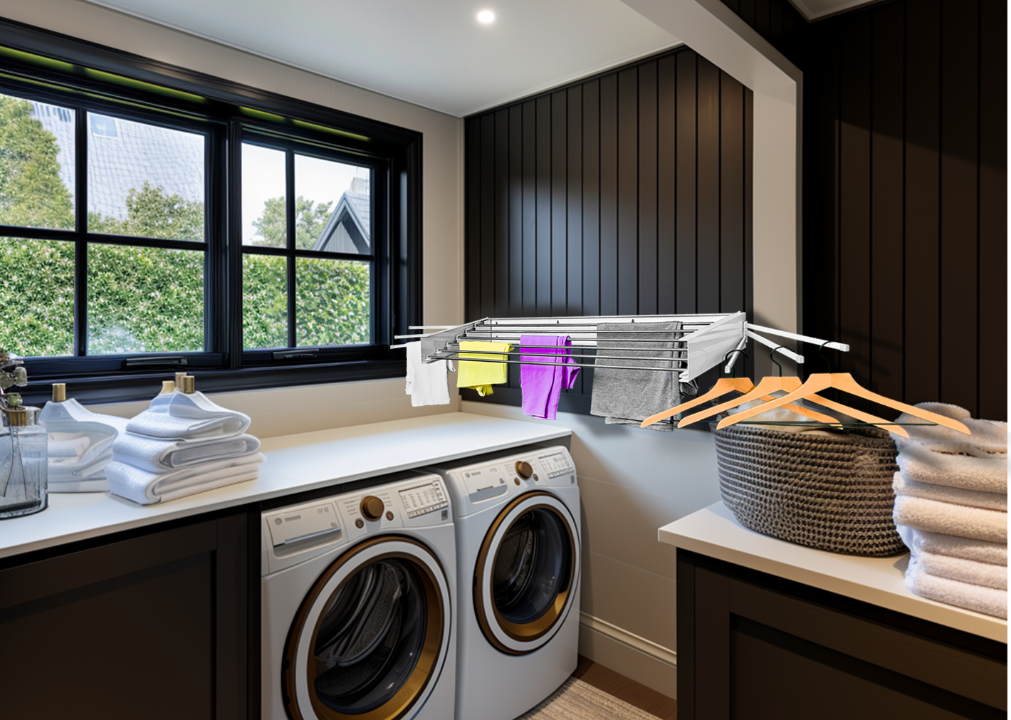 Our new Hidden Laundry Drying Rack with Fold-out Arms is the first of it's kind. The sleek patented design provides 2X more drying space than top selling competitors, without the clutter of your clunky drying racks of the past. The fold-out arms can be used when the rack is collapsed flat on the wall or when it's fully extended, providing an unmatched 26 feet of drying space